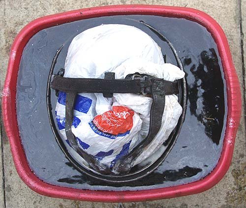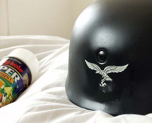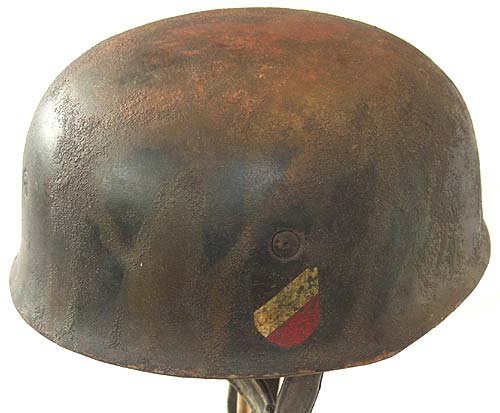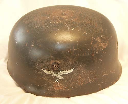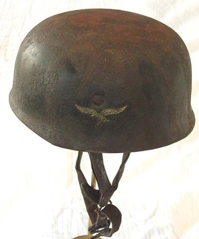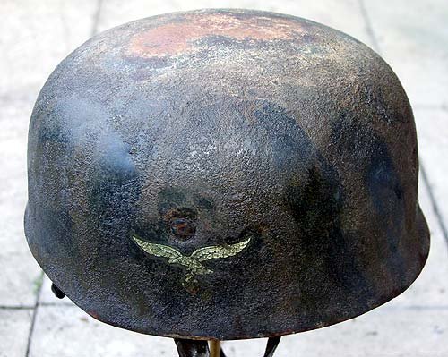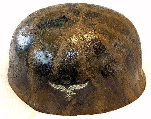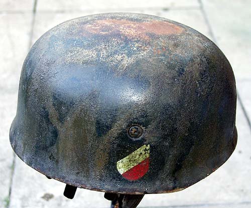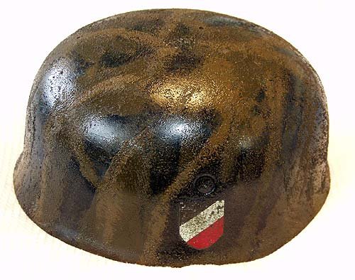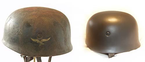 Поднадоело ругань читать.... Весь процесс реставрации описывать не буду.Можно найти на военных сайтах. Но ...Важно.Окрас правильной краской (колеровка RAL6006-для вермахт,7009-люфт).Минимум в три слоя.И не торопиться по слою в сутки.На втором слое (и далее)посыпаем пылью(не песком),и не смейтесь если нужен результат. Далее отложим на недельки две.Потом берём самую мелкую шлифшкурку,и под проточной холодной водой снимаем глянец без нажима. Дальше вообще весело. Высушили сутки.Потом на шлем кидаем горстями речной песок (без фанатизма). Получаем нормальный шлем. P.S.Отказался от всех методов вообще.Сейчас пока можно найти самому,или приобрести за относительно небольшие деньги нормальный шлем в сохране. Есть также ценители касок именно такими как они есть из земли и (или) с боевыми повреждениями. |