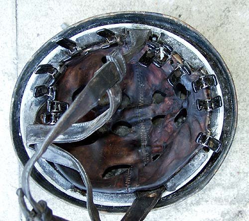 Эта не хорошая со старка, а простое обливание кислотами и поджигание патина полученная в ее результате стирается пальцем, а кожа воняет кислотой хотя оригинальная обычно пахнет сыростью. Такими касками весь ебай завелен.
