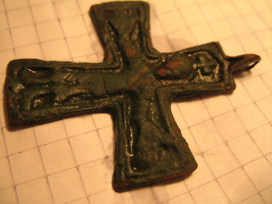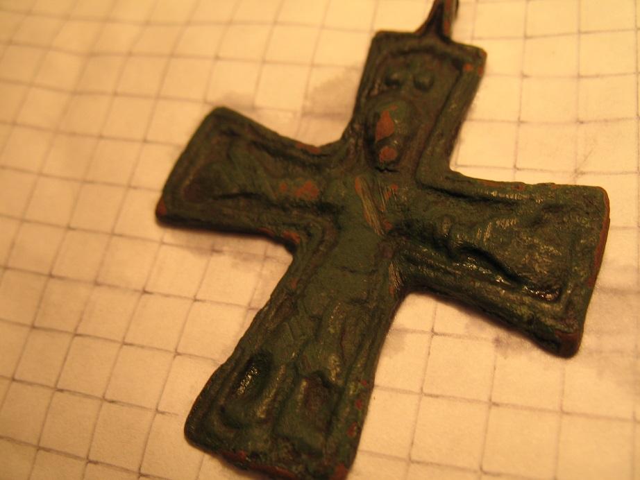 При чем тут скандинавы, наш он, русский и кажется подлинный, и ушко чуть протерто. А фото надо делать строго прямо над крестом, не волнуйтесь, кому надо все увидят и рельеф в том числе. И без воды.