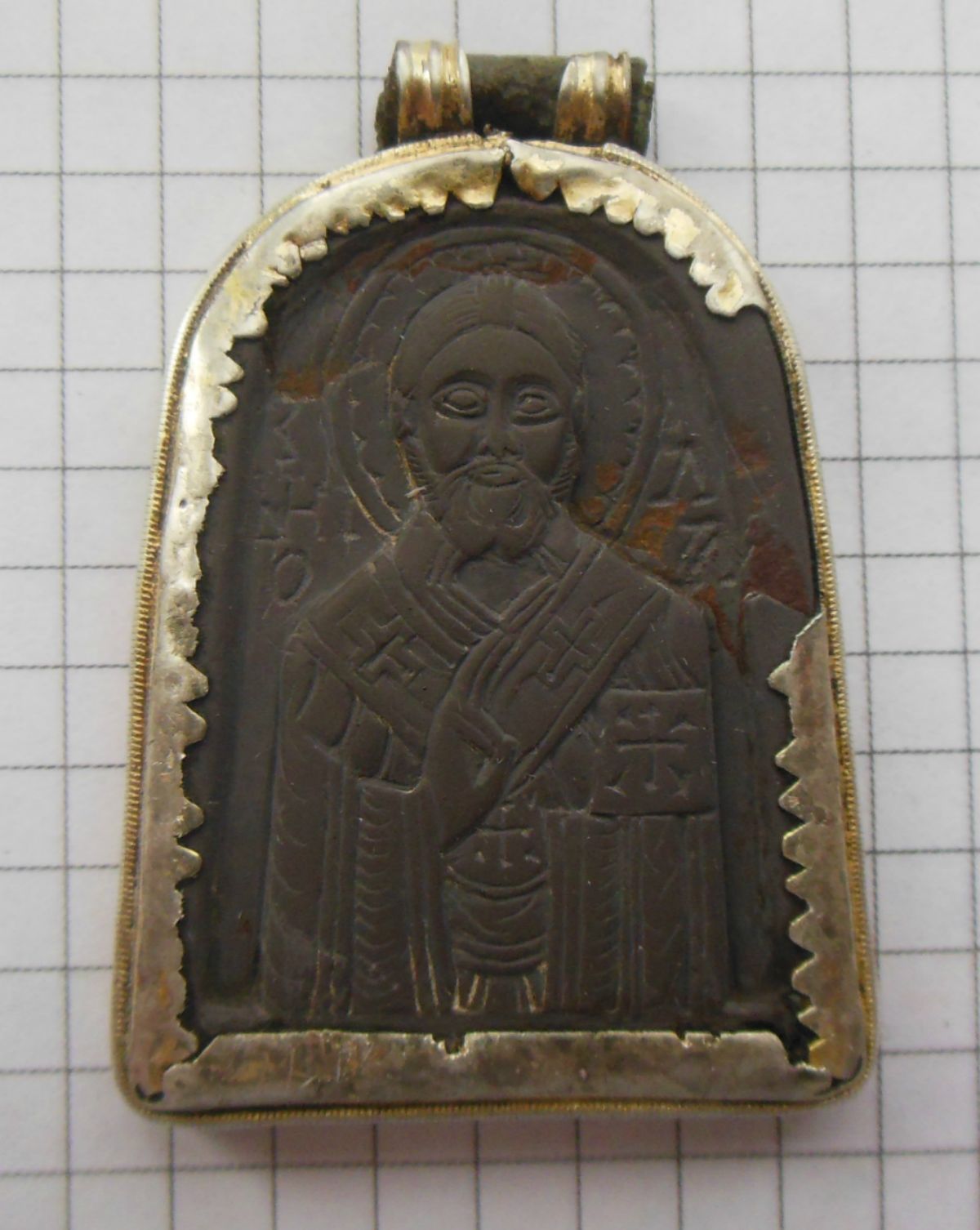 "омегообразные" титла над надписями. Ну а изображение весьма популярного в Новгородской земле святого архидиакона Стефана - подсказка для ленивого . QUOTE(Кирилыч @ Apr 16 2014, 19:45) Николай Чудотворец (надпись ЗЪ НI[К]О-ЛА) Архидиакон Стефан (надпись СТЪ - СТЕПА...) Возможно, 15 век, но точно пока не скажу. Соглашусь с датировкой XV в QUOTE(litnik @ Apr 16 2014, 19:48) По окладцу. В такой манере оформляли иконки и в 14 веке. Хорошая огневая позолота. Рад за Вас и за нас. В такой манере оформляли и в XV и XVI вв. А что касается свода по каменным иконкам Николаевой, то давно уже не секрет, что датировки в ней - "искусствоведческие" без надежной привязки к археологическому контексту и закрытым комплексам. Причем для каменных иконок XV-XVI вв. в сторону удревнения. Особенно это бросается в глаза, смотря на датировку каменных иконок с Никитой Бесогоном XIII в., на век раньше реального распространения культа этого святого. Сообщение отредактировано boratinka: Apr 16 2014, 19:43 -------------------- Куплю каменные сверленые топоры и
