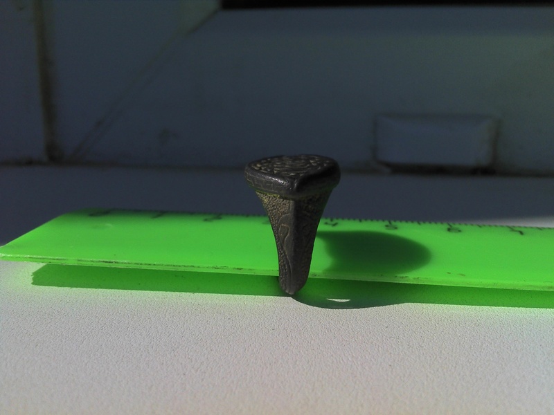 Жаль что сломана шинка, но слом не новый, патина однородная. Изнутри и снаружи окисел не затронул некоторые места, просматривается желтый блеск. На лицевой поверхности каст обрамлен рантом с рисунком. Основной рисунок глубокий, плетёный, явно для оттиска. Под ним просматривается полированный желтый блеск. Шинка имеет красивый разнородный рисунок. 1-Хотелось бы узнать, время(датировку) присутствия этого предмета на пальце. 2-Возможного хозяина. Размер шинки .... Моей жене на мизинец "тютя в тютю" 3-Что означает надпись на лицевой части. 4-Металл по определению патины-серебро. Но почему в местах не затронутой окислом явно жёлтый металл. Может золочение, а может и золото 5-Ценность которую представляет данный экземпляр. Как материальную, так и историческую. (Не ради наживы, а ради успокоения души!) Сообщение отредактировано GoTH: Apr 27 2014, 14:33 Вложенные эскизы изображений |