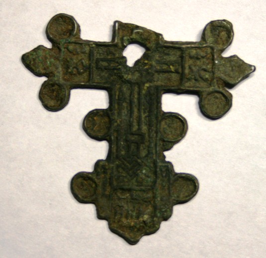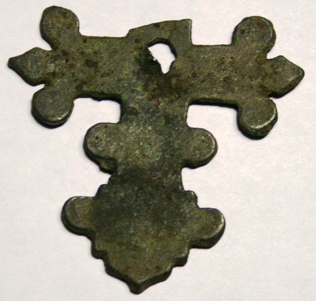 Добрый вечер. Сажал картошку попался такой крестик, который датирую 17 в.( по сопутке). Вопрос в чем: он вроде как имеет следы ремонта того времяни, причем отвестие сделано как то топорно, пробита прям в изображении креста - это вообще нормально ?, так практиковалось? или его трактор подъобломал ? И еще, как называется данный тип -последнии хозяева участка такие предпочитали
