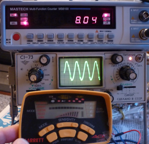 QUOTE(Виктор... @ Jan 23 2011, 18:14) Тогда сообщайте о результатах(хотя бы промежуточных). Сегодня закончил тестовую катушку. Результаты порадовали. Катушка сводится очень легко с помощью переменного резистора. Схема подключения катушек по ссылке выше. Катушку делал кольцо 20 см. Пятак ловит на 20 см дискрим на месте. Попробовал сделать катушку Тх на 8 кГц (рабочая частота АСИ 6.5 кГц) - работает как ни странно без проблем. Немного сдвинулась шкала дискрима вверх (черный металл остался на месте), но чувствительность к цветным осталась очень хорошей. На фото 6.6 кГц - это сигнал с родной катушки Заранее прошу прощение у Фомы что здесь влез в его тему. Если будут вопросы по АСЕ то открою тему. Сообщение отредактировано GSL: Jan 30 2011, 21:41 Вложенные эскизы изображений |