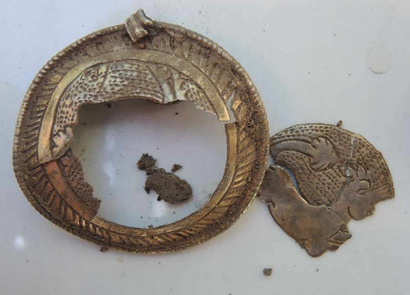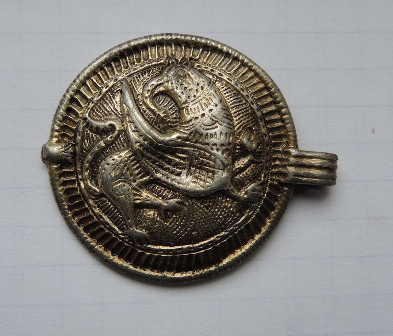 У меня есть фото ломаной привески. Тоже не мытая, делал на копе, но понять, что за зверь был изображён можно.