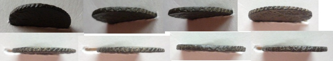 Копейку можно в дистиллированную воду не на долго и аккуратно почистить, а по полушке нужен гурт, на Вашем фото не совсем понятно.