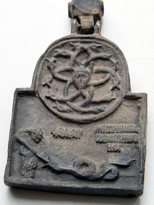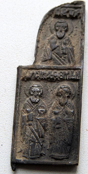 Складень змеевик с Никитой Бесогоном. 15в. Красивый.