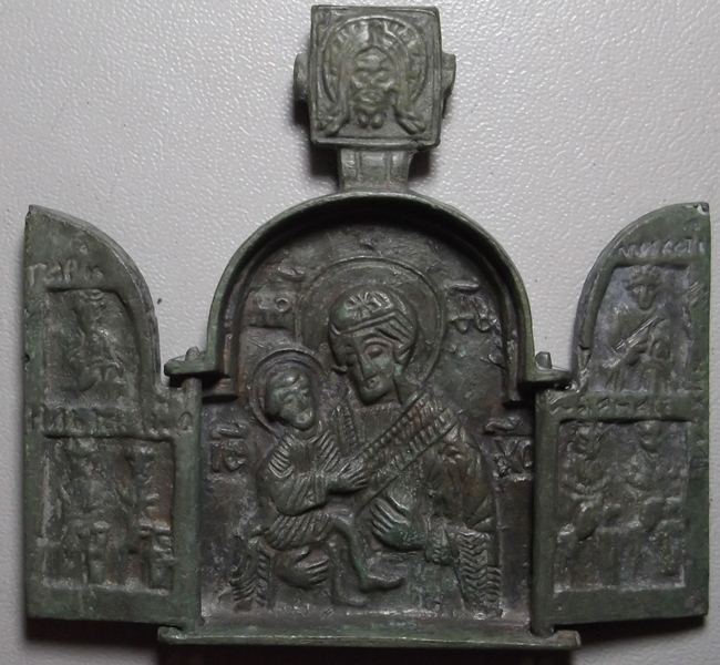 БМ Одигитрия с Избранными Святыми. Этот думаю 17 век. В сборе, и хорошем состоянии. Поздравляю, прекрасная находка