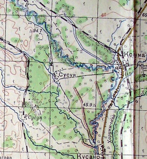 Найден севернее Южно-Сахалинска на месте ушедшей в лету деревеньки Курское (Сусуя). Там попадаются советы, японщина, вещицы народа Айну.