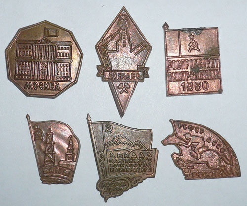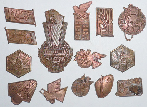 Странно, что нет ни одного значка с эмалями... Похоже, что заготовки были с какого-то заводика по производству значков стырины и заныканы.., может и от ОБХСС.