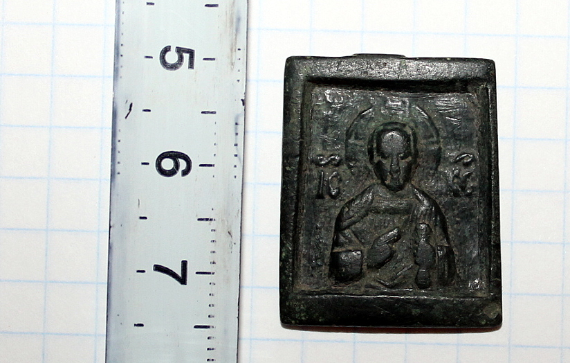 Уважаемый товарищ. Мне тоже кажется , что это не камень. Извиняюсь за качество фото, но судя по вашим фотографиям, я нашел некие совпадения материала вашей иконки с обломками изделий вятичей в моей так сказать коллекции. Материал безусловно черный, похож на камень... но специально для вас сейчас я сломал обломок изделия той эпохи... желтоватый отблеск металла... фото конечно говно и я могу ошибаться, но судить вам. так или иначе иконка на мой взгляд очень красивая. С уважением. Сергей.