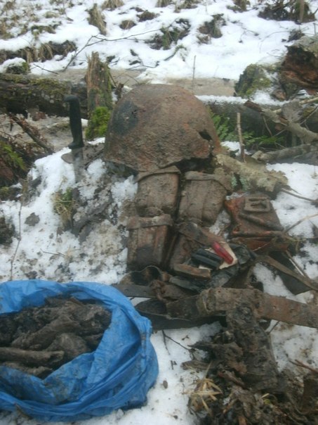 Вскоре я зацепил советскую каску, а в ней оказалась пилотка с останками черепа...