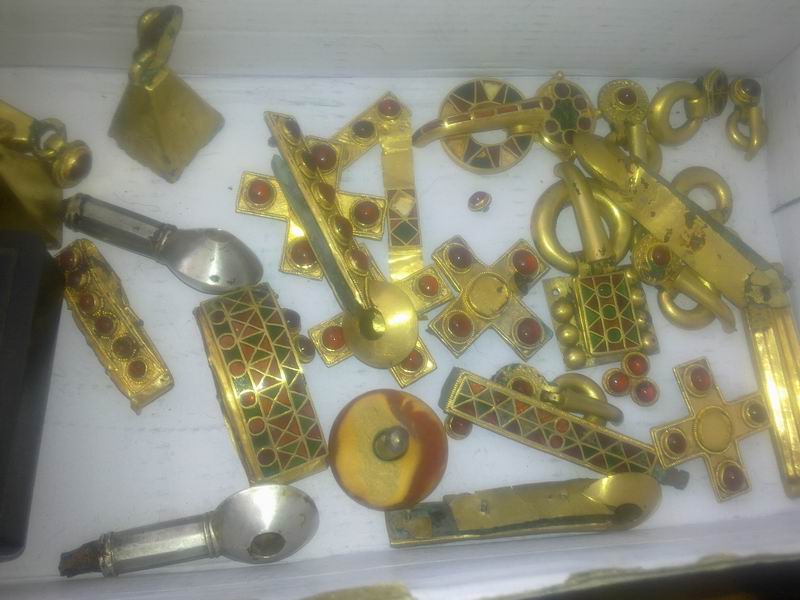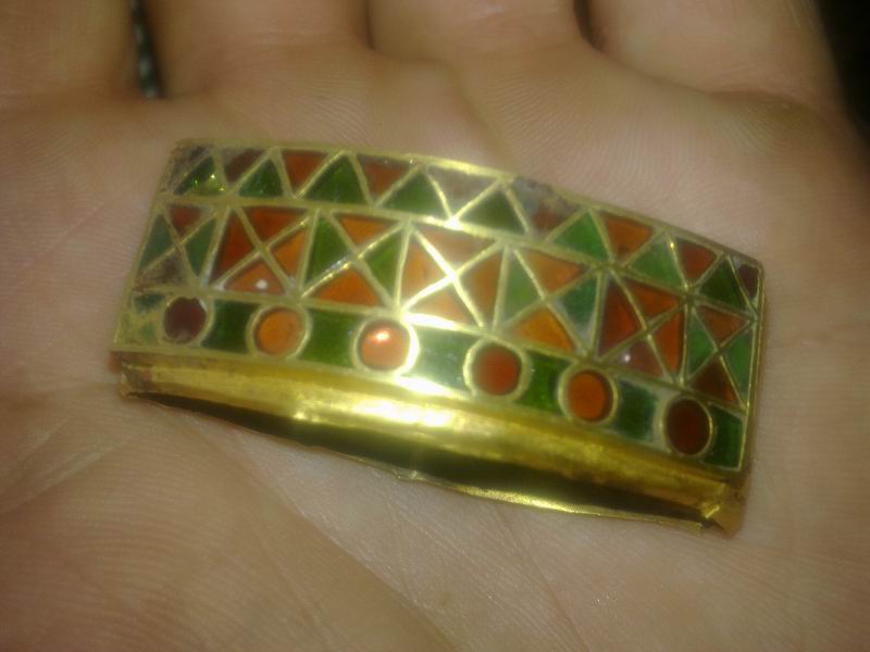 Один человек, родом из той деревни, не далеко от которой нашли, занимался металлом (черным). Ходил с МД по округе, копал и сдавал в пункты приема металлолома. По ходу деятельности постепенно начал и монетки подъискивать. Короче уже почти начинающим поисковиком становился. И совершенно случайно выкопал недалеко от села несколько украшений. Никому естественно не рассказывая, начал шурфиться. Зарывался где то по пояс. Несколько недель рыл. Потом, через моего приятеля познакомился со мной. Показал мне все это. Если честно, я и вдуше не понял, что это за финтиклюшки. Золотых вещей там было 2 или 3 предмета, остальное как я понял - позолота. Многие вещи были со стеклом и я на 100% был уверен, что это позднятина. Но на всякий случай сфоткал. Показал одному челу, он тоже не догнал, хоть и опытный в этих вещах, но сказал, что это может быть захоронением какого ниб. воина. Мож татаро-монгола. Посоветовал выкупить на всякий случай, если не дорого конечно. Я если честно, сдрейфил немного, думал чел. курган какой раскопал. Но он сказал, что никакого кургана там и впомине небыло. Ни остатков костей, ни кусочка керамики. ни пепла. На том именно месте, советы в свое время прокладывали трубу, и эскаватором все и поразворошили. (Он позже свозил меня туда). Там и близко не АКР, и не курган. Я перелистал все доступные источники. Короче, по стольку много мне в лом по клаве бить. Позже допишу.