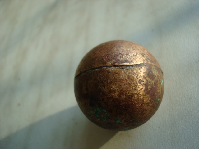 С мельницей, конечно, гипотеза интересная, но не стыкуется. Во-первых, никаких следов трения, и наоборот - шов отливки в двух половинках совершенно явственный, фото выложу. Во-вторых, найдено на перекрестке тракта Петербург-Москва с трактом из Царского села в Ижорские Заводы, Колпино. Село Славянка. Много попадается картечи свинцовой, и пуль петровского времени от шомпольных ружей. Попадаются и чугунные ядра, но более крупные, чем эти.