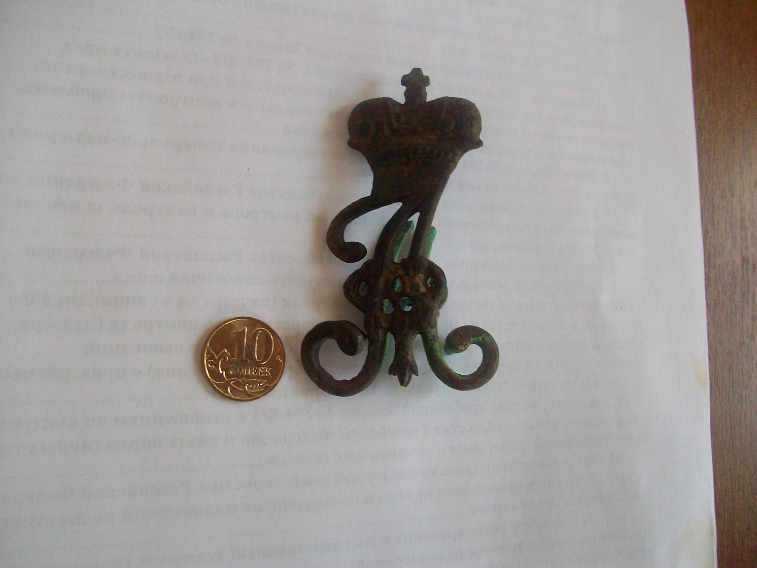 У вас вензель Александра 1го но не с погон, а с казачей перевязи, либо с шапки ратника народного ополчения, целый стоит 100-200 долларов, в вашем сохране не знаю....