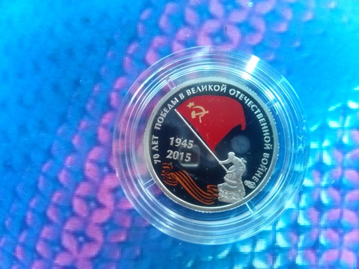 К "70-летию празднования дня Великой Победы" СПМД выпустил жетон, сюжет на фото, диаметр 30мм, гурт рубчатый с промежутками, способ чеканки "пруф-лайк", жетоны изначально помещены в капсулы. Стоимость 1шт. 550руб. пересыл 80/120руб. ПРОДАНО!!!