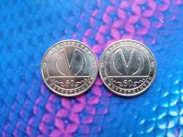 юбилейный жетон "60 лет Санкт-Петербургскому метрополитену" без блистера, стоимость 1шт. 70руб. пересыл 50руб.