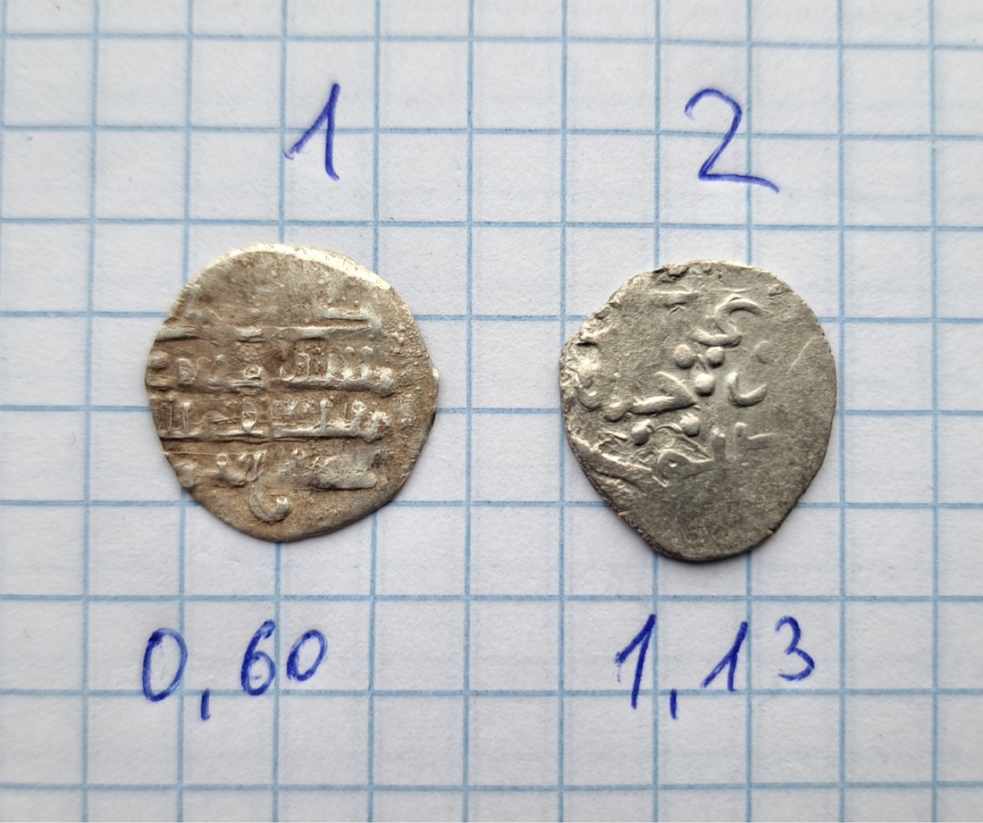 QUOTE(Красноармеец @ Aug 15 2025, 16:51) Подскажите пожалуйста! ... Друг отправил с копа. Весов нет. По примерной цене хотябы.... Для атрибуции и оценки монеты надо хотя бы рассмотреть. Фотать на копе надо обязательно по три штуки. По одной - чтобы было видно - наверное нельзя. Для оценки нужен вес. Две "нижние" монеты выглядят получше, но могут быть подрезаны, что сильно влияет на цену. -------------------- Специализация: джучидские данги от Тюляка до Ибака.
