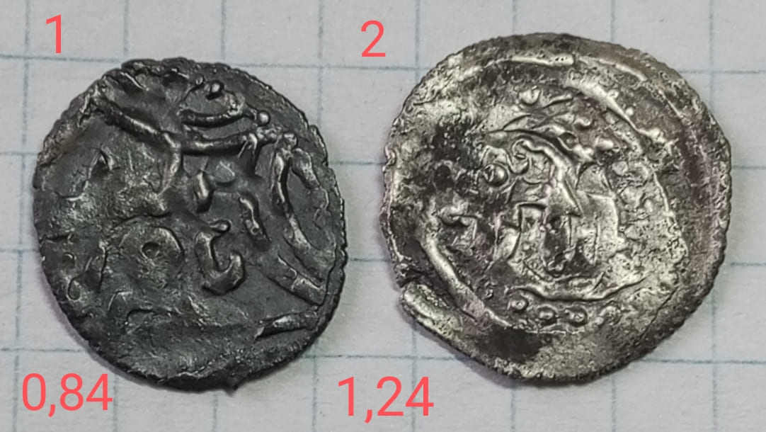 Владислав! Почитал я обсуждение по подобной монете на Зено и как понял, что там пришли к мнению, что это простой обрезанный данг. Хотя монета у меня, она такая же, как из той темы. И я, например, вижу что это не обычные штемпеля, а штемпеля для монеты меньшего диаметра!