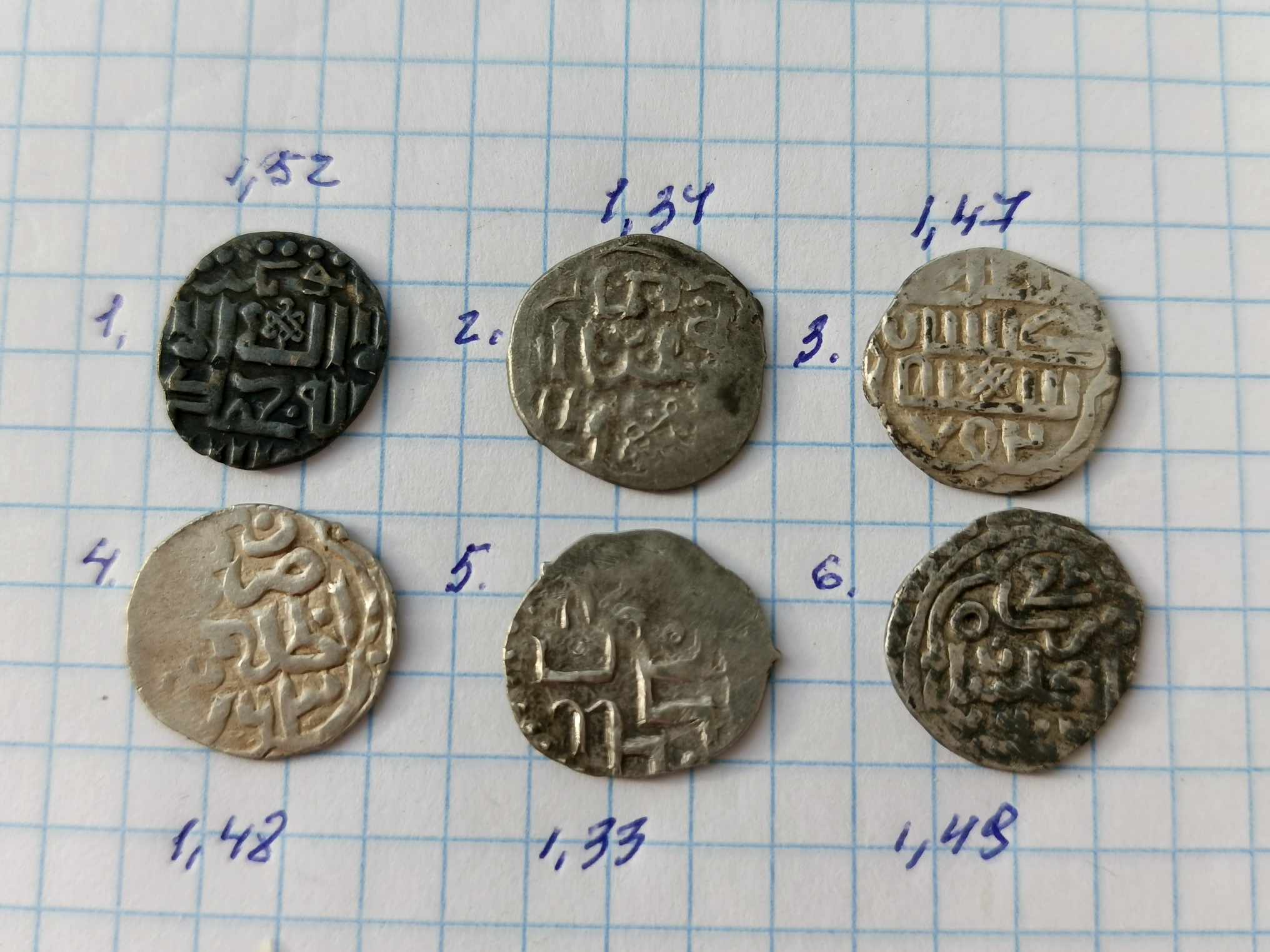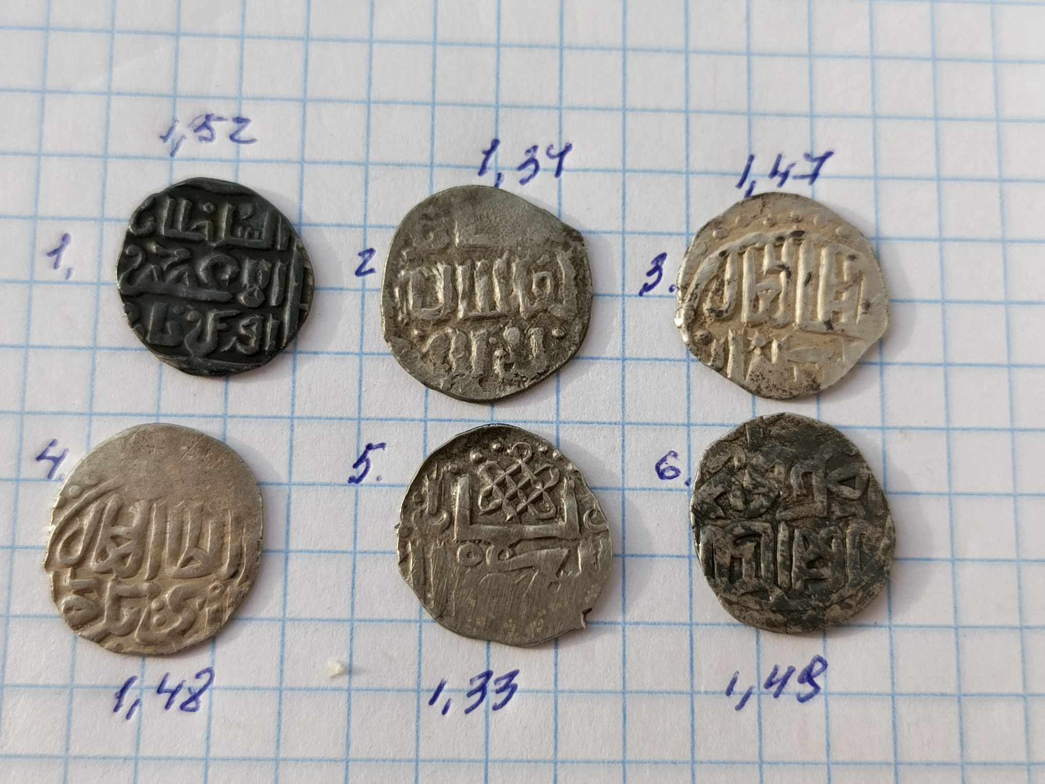 1, 2 и 3 - Джанибек, Хорезм, 744 г.х.