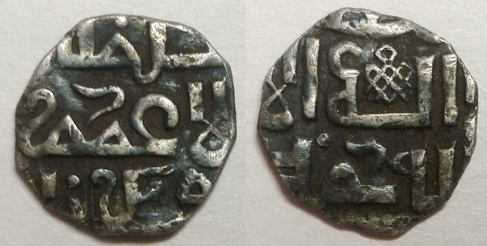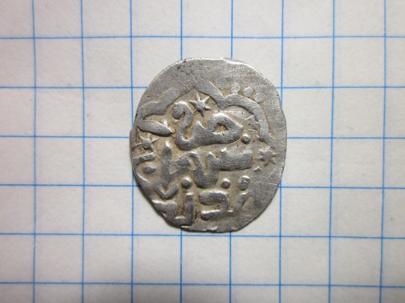 Кстати, прошу простить, в левом сегменте конечно же должно быть написано Сарай, а не имя халифа. Но не суть, "Сарая" тут тоже не наблюдается, как и четверки. На моей монете схожий символ, но внизу точно не цифры: 73