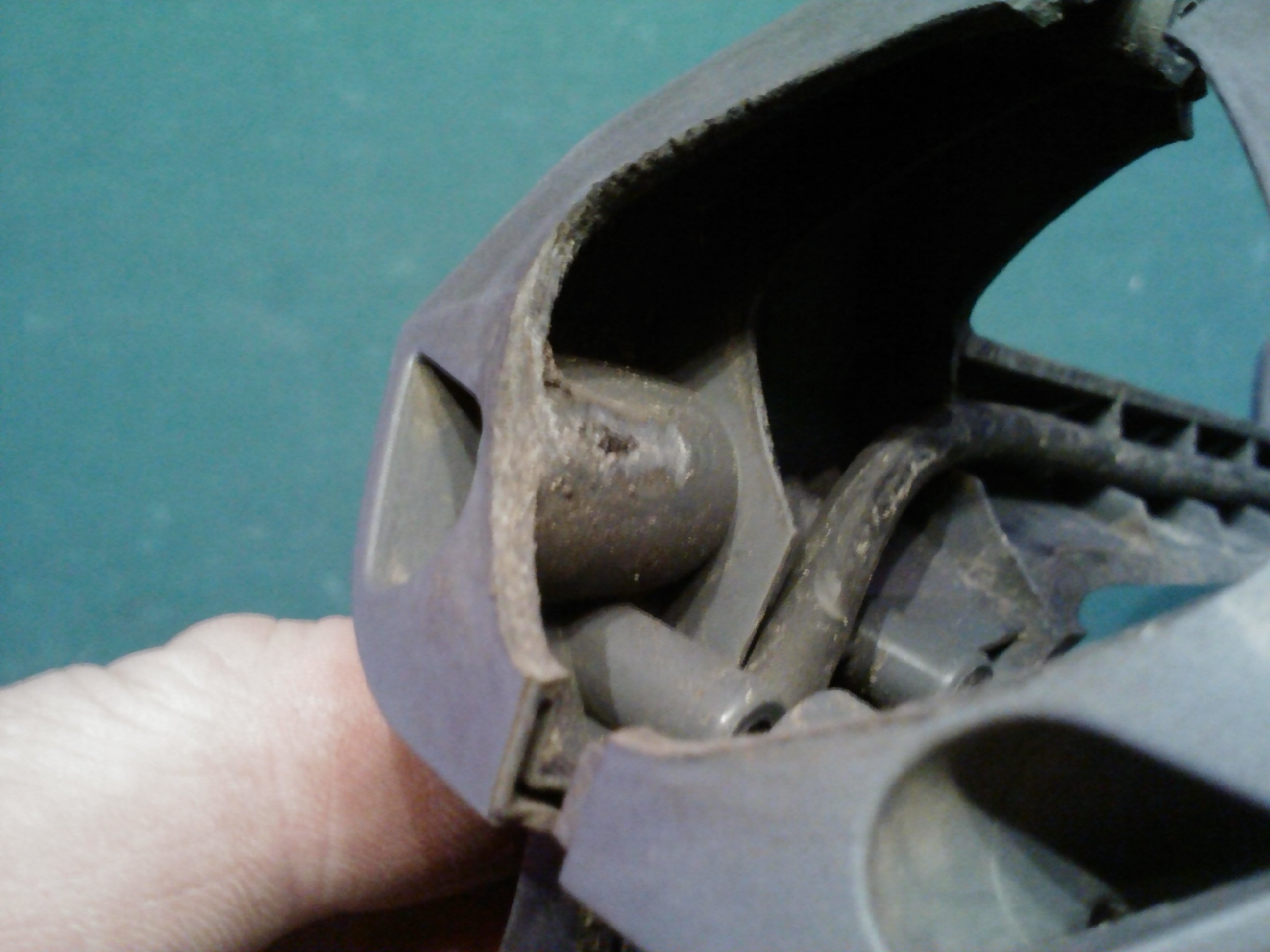 А внешне ничего и не видно. И рукой этот люфт при проводках не заметен. Но при толщине штанги в 1мм.( примерно), у меня протёрлась канавка такой же глубины( см. фото).Ситуация явно критическая...Что бы оценить величину люфта делаем следующее: прижимаем ногами катушку к полу, качаем ручку вправо-влево. Вы будите очень неприятно удивлены...( если вы не лукавите изначально).С уважением...