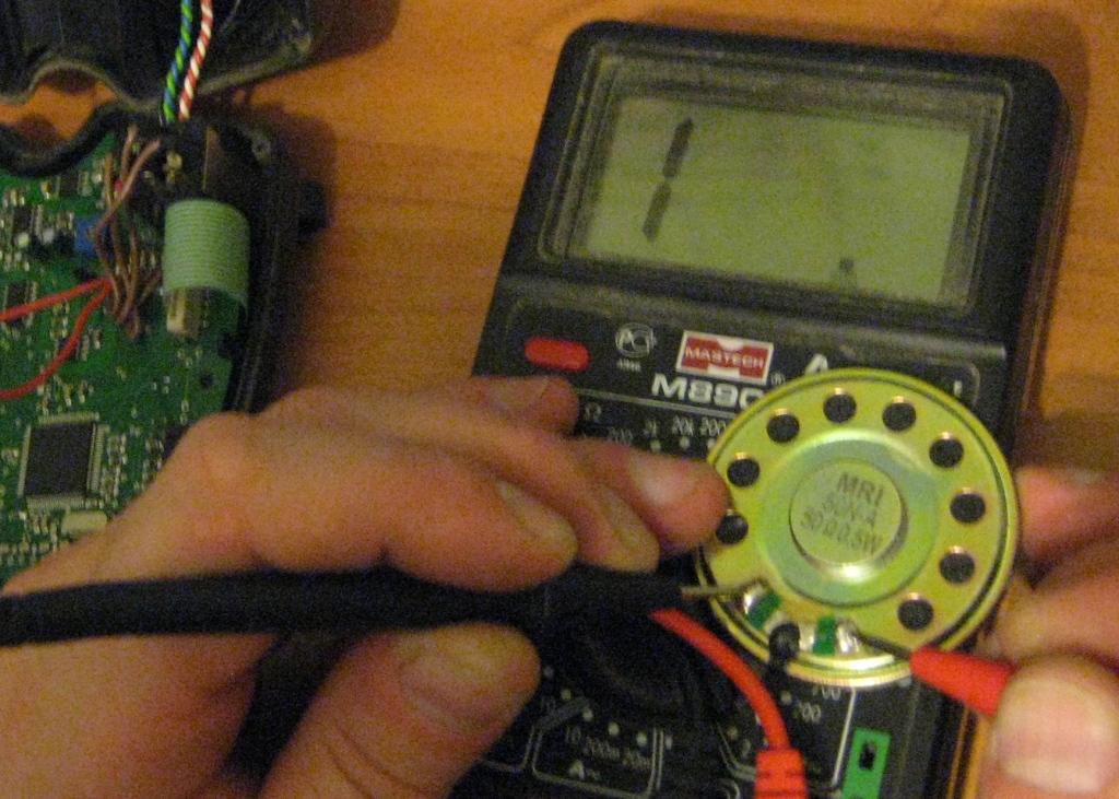Видимо у вас разрыв в динамике по мультиметру, думаю в любом радио магазине или на крайняк из детской игрушки.