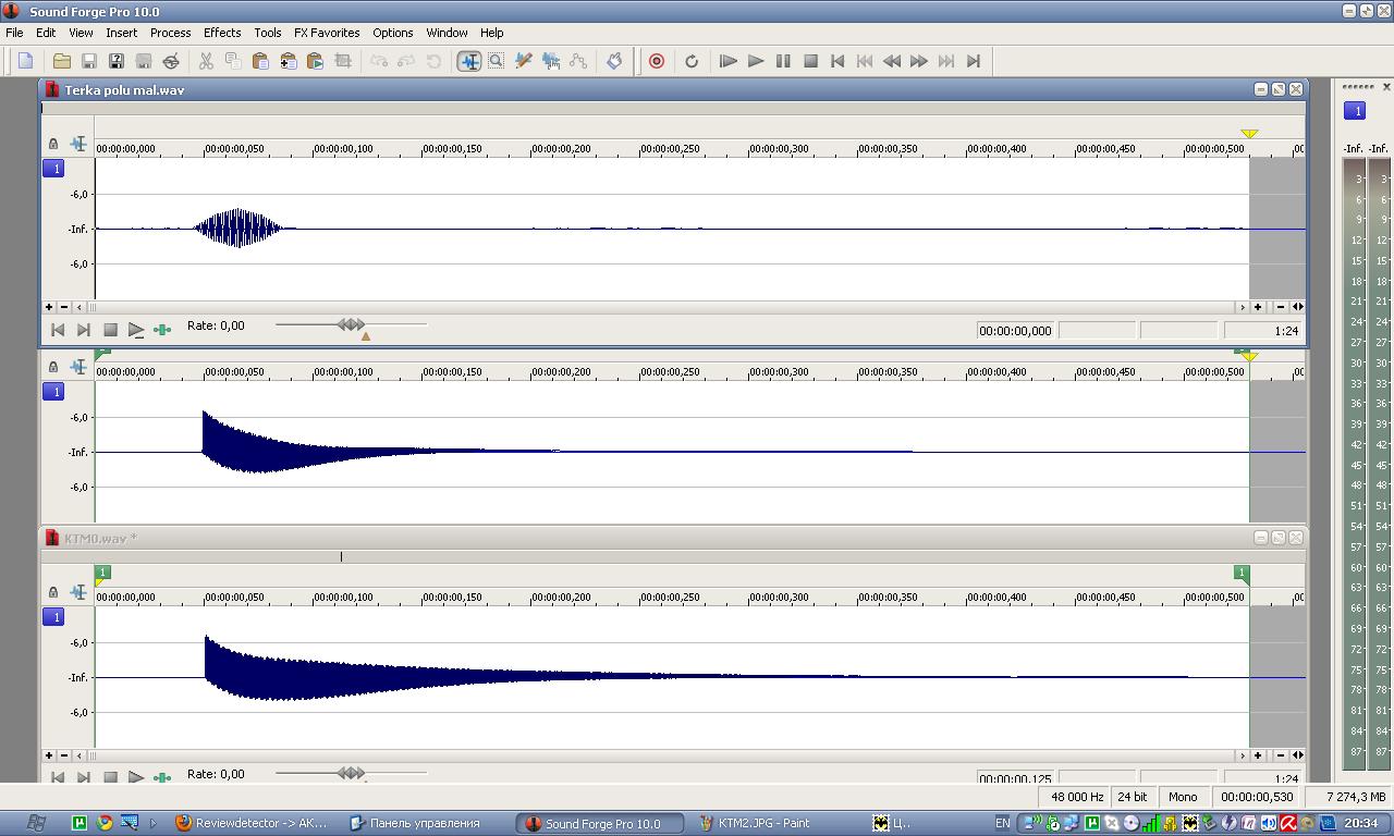 Получается у Терки преимущество т.к. она при быстрой проводке даёт звук короче чем у Сорекса в КТ, а при медленной даёт длинный (а у Сорекса как не маши звук одинаковый) ИХМО : Куда же еще удлинять КТ он и так получается длиннее чем у Терки Вот мои замеры быстрая проводка: 1 Терка полифония 2 Сорекс КТ 3 Сорекс КТМ Сообщение отредактировано dmitryru: Aug 7 2010, 20:14 Вложенные эскизы изображений -------------------- Не курю - Перешёл на электронку.