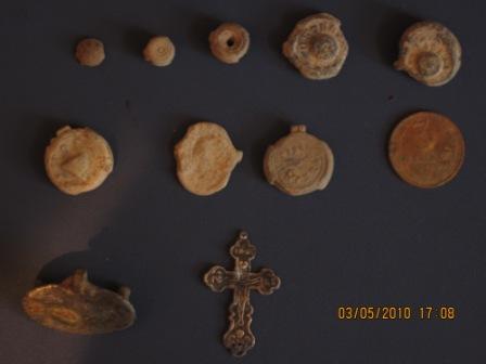 Первый и более менее серьёзный выезд с Сорексом был в субботу 1.05.2010 года, приехал я на поле находящееся между двумя, тремя ныне существующими деревнями. Думал что просто похожу позакапываю разные цели посмотрю глубину ну и т.д , но забыл наборчик монет дома так что пришлось просто погулять по полю. Итог полтора часа хождения пополю :имперская пуговица с орлом, пуговка гирька, 20 коп СССР 1935г и на последок 1 коп 1984г,далее начался сильный дождь и пришлось ехать домой. Первые впечатления от прибора подтвердились удобный легкий аппарат с замечательным набором функций тем более при его цене, цели видит замечательно порадовал режим РВ-КТ информативно но непривычно ранее с подобным не встречался ни разу, статический режим довольно точно указывал центр но бывало начинал ну или продолжал петь свою песню при уводе в сторону или поднятии катушки вверх регулировка чувствительности не помогала приходилось выходить в динамику потом снова в статику, при цеплянии за одеревеневшую траву ложных срабатываний не дает. Конструкция штанги приличная, жесткости вроде хватает , люфтов не заметил. Немного нахожусь в замешательстве из за фазы грунта она у меня от+13 до +16 , в каких пределах она должна быть ,извините возможно это глупый вопрос просто ранее с балансом на грунт не сталкивался все-таки начинающий.