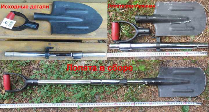 Где-то в дебрях ю-туба ребята сделали электрогитару из лопаты, так почему бы не сделать лопату-телескоп из пылесоса! Итак, мое последнее достижение по части лопаты: В качестве черенка использована стальная телескопическая труба от пылесоса, лезвие и ручка покупались отдельно (87 и 56 руб. соответственно). Крепление пока на болтах, но буду думать чтобы обходится без инструмента. Длина собранном виде регулируется до 115 см, в разобранном - 50 см. Сообщение отредактировано emkgroup: Jun 14 2014, 18:59 Вложенные эскизы изображений -------------------- Оплата: карта СБ № 4276........7822