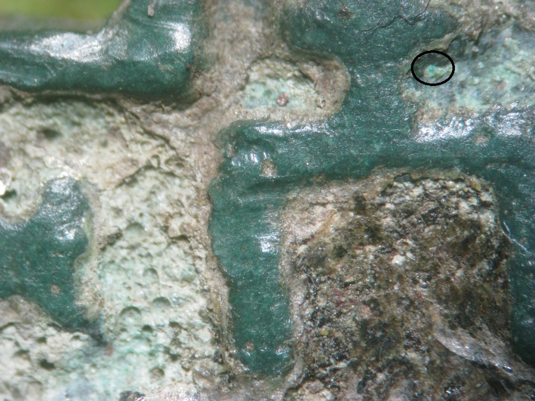 QUOTE(рыба меч @ Apr 27 2017, 18:14) Доброе время суток. Есть такой крестик, не пойму то ли это песок, то ли эмаль. Ранее сталкивался с эмалями, но они не были такими рыхлыми, на этом же кресте при удалении крупных песчинок поверхность просто рассыпалась На крестике остатки эмали. Зелёные шарики это окислы на металле. |