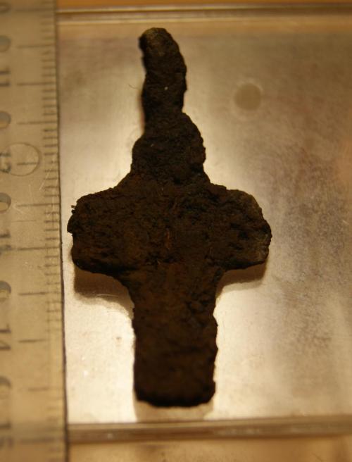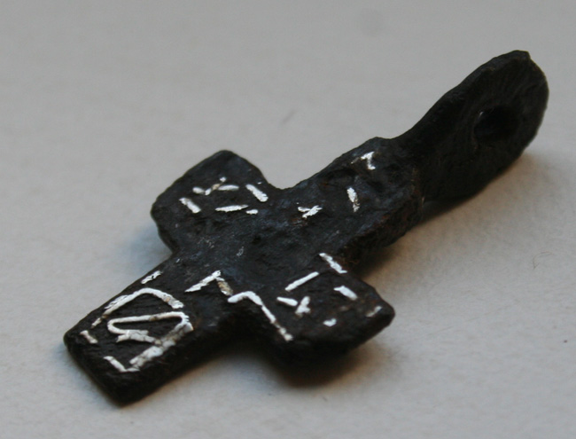 И так смотрел, и сяк разглядывал.. Вот, новые фотографии сделал - а все равно так и не понял, ЧТО изображено на нижней перекладине креста..