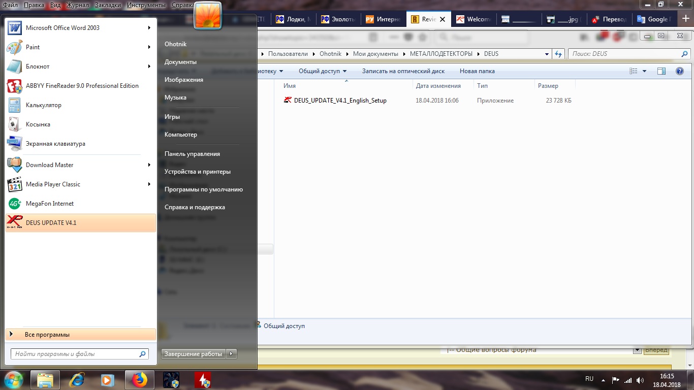 QUOTE(ЧерепашкаНиндзя @ Apr 18 2018, 11:09) Хочу 4.1 , уже 3 компа испробовал. Такая хрень на всех трёх.Либо санкции какие на программу ввели. Может с пультом что не так? При запуске программы, высвечивает 2 окна, нажимаю старт и в итоге Просто ради интереса попробовал скачать прошивку с оф сайта. Скачалась запросто. И так-же ради интереса попробовал установить. Установилась запросто. Файл DEUS_UPDATE_V4.1_English_Setup. Размер файла 23 728 КВ. Или это не тот файл? Ради интереса, потому что просто решил попробовать ваши проблемы. Типа: и что там за проблемы такие. Деуса у меня нет, и файл всё равно удалю. Вложенные эскизы изображений -------------------- Мои МД и пин: X-Terra 705, Garrett ATX, Сфинкс 02
