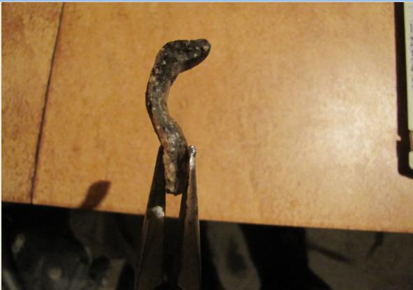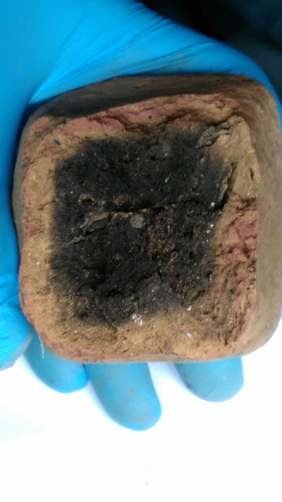 Оттуда же извлек некий предмет, сначала показавшийся кирпичом, но после осмотра и скола верхней части, понял, что не кирпич. Черная субстанция напоминает просеянную землю (склон откуда извлек песчано-глинистый) и вообще похоже, что её слепили из земли и обожгли. Вложенные эскизы изображений |