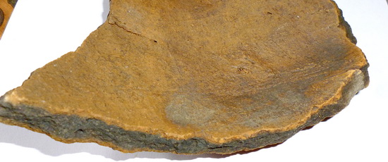 Приветствую, сегодня нашел осколок керамики, овальной формы, размером меньше спичечного коробка, с одной стороны глазурь, а с другой слой свинца примерно 2 мм толщиной, что за посуда такая могла быть?