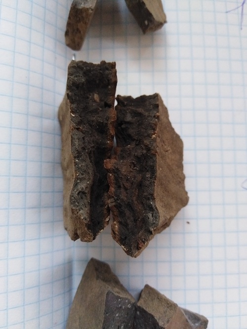 вчера нашли место стоянки калмыков (наверно калмыцкий улус), и на нем необычная круглая площадка диаметром метров 20 без единой травинки, с большим количеством битой керамики на поверхности. Земля вся на этой площадке рыхлая с пылью и пеплом, такое чувство что скот на этом месте по кругу гоняли несколько дней. По словам местного пастуха на этом месте трава никогда не растет, земля всегда такая с битыми горшками сколько он помнит. Из находок на этом месте попалось несколько медных квадратиков с буквой А.