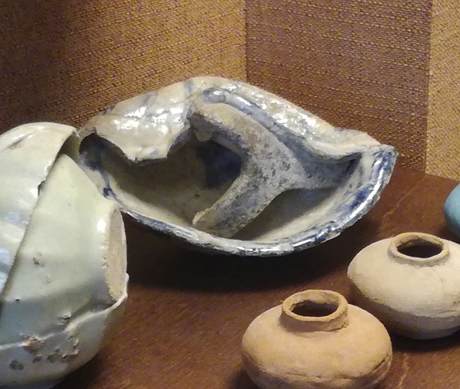 В горне для обжига миска ставится вверх дном. На ее поддон устанавливается тренога а на него снова миска вверх дном. получается такая пирамида, где тренога это прокладка между мисками. Ваша миска обжигалась в середине пирамиды. В ГИМе есть только такой экземпляр, где треножка застряла в бракованном изделии. Так ее и откопали.