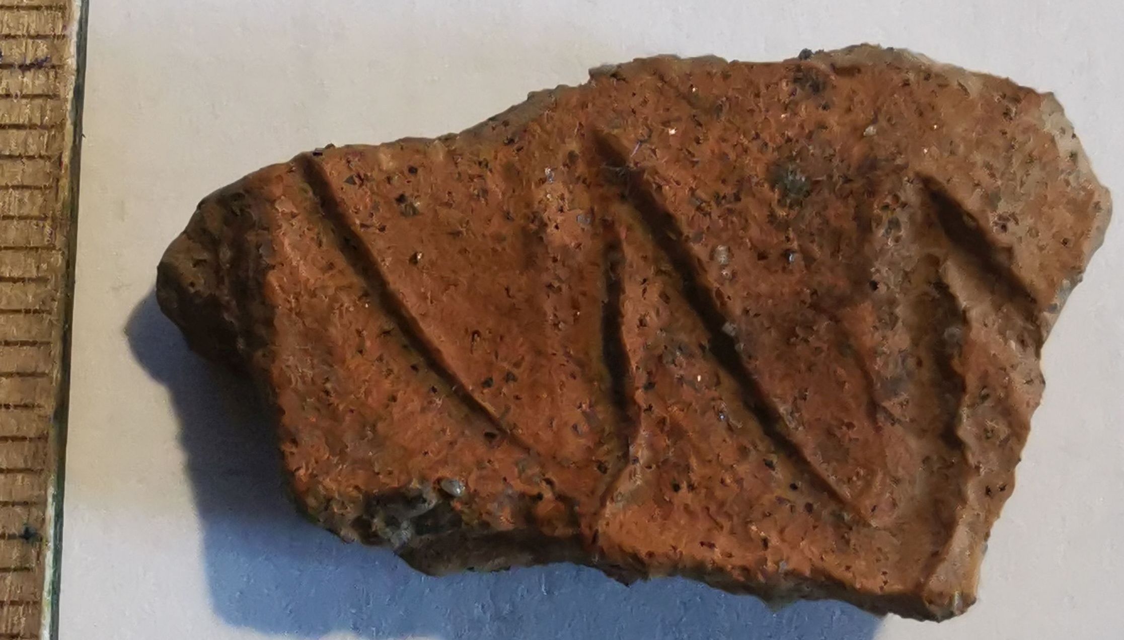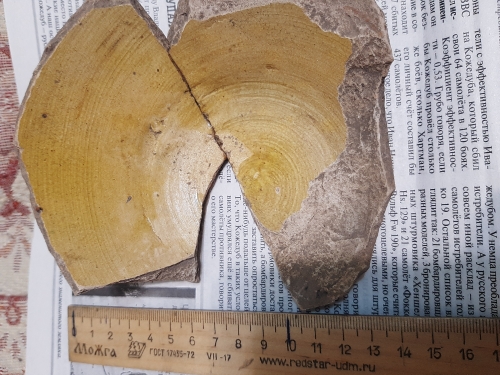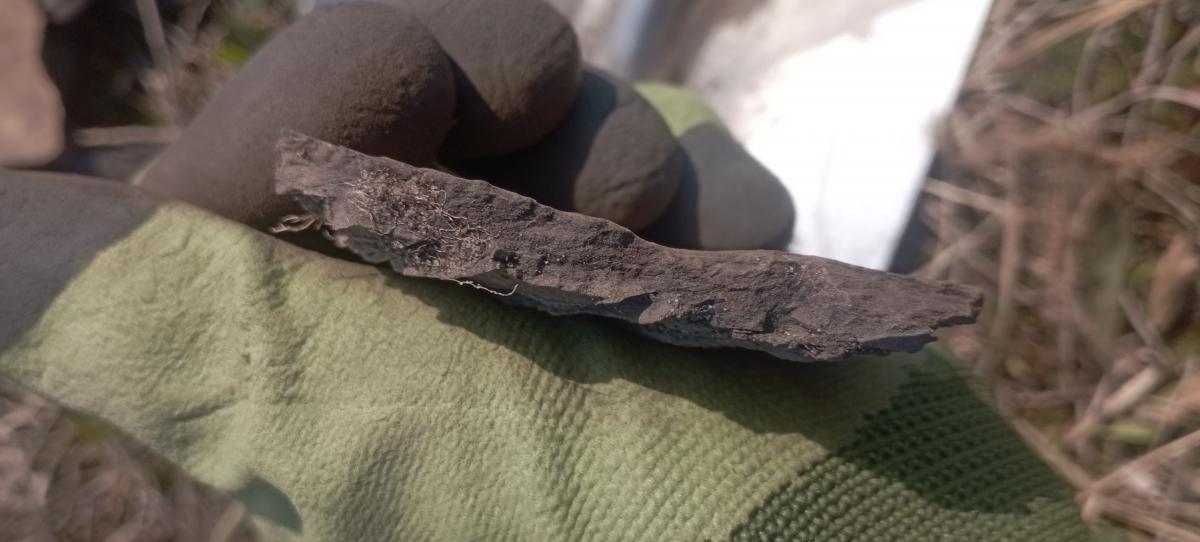 Этот осколок найден на берегу Оби зимой на песчаной отмели, где нет никаких признаков поселения. Выемки 100% сделаны ногтем человека, т.к. мой ноготь входит туда идеально.