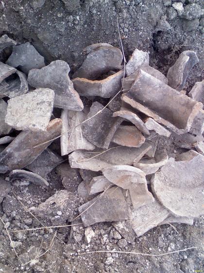 добрый день, подскажите кто с таким сталкиваться - нашел на местности белые пятна от мазанки старых домов, начал шурфить, когда закончился светлый грунт (примерно метр в глубину), пошла одна керама (фото прилагаются). и у меня сложилось такое мнение, что вместо фундамента клали одну кераму...