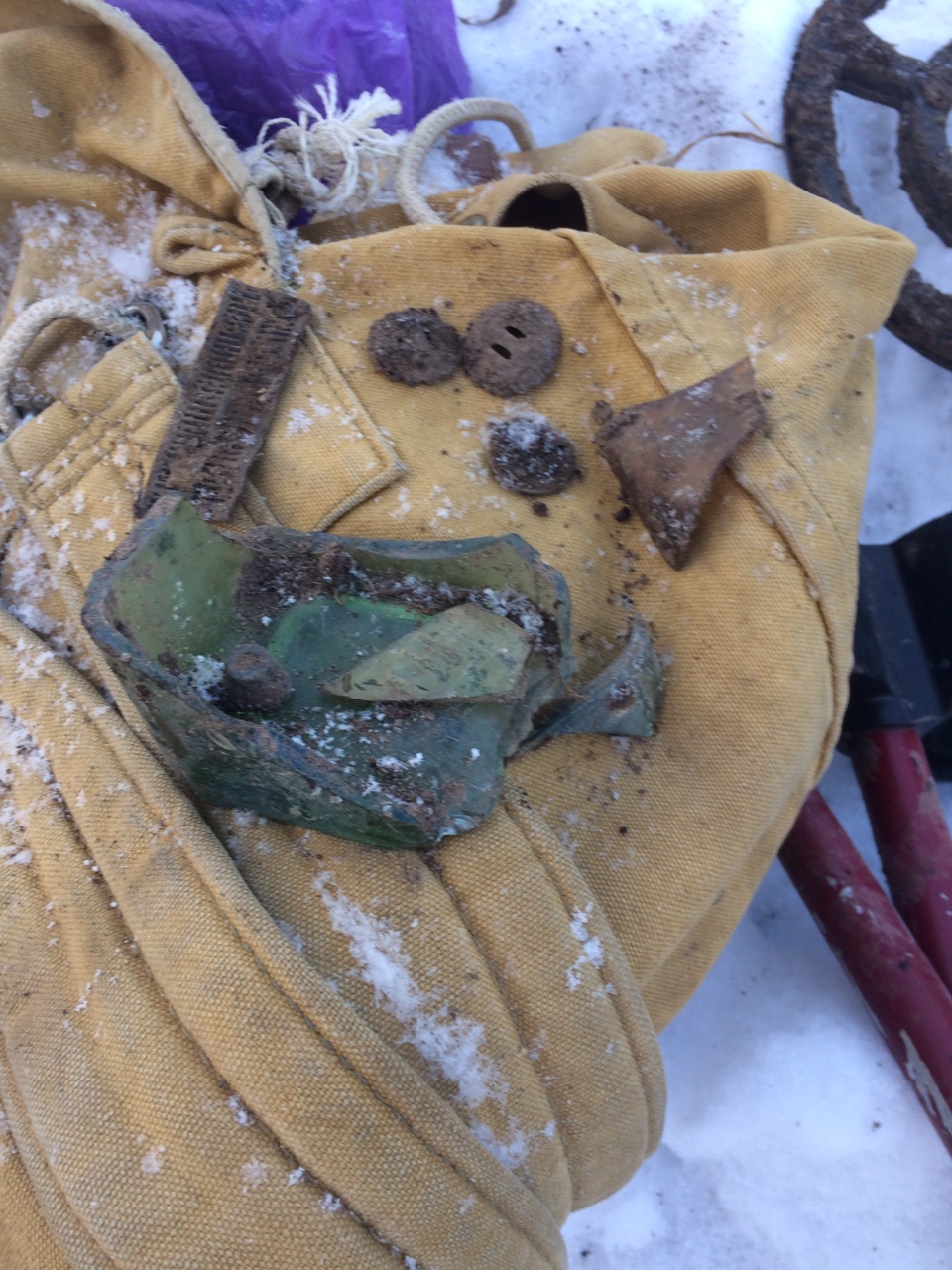 Правда, ни как две недели назад легко копалось, неделю мороз постоял -7-10, а потому при ударах киркой по мерзлому кирпичу пальцы из суставов выскакивали. Но, пепельница, брошь,цветочный горшок, палаточный колышек вермахта, универсальный ключ, были взяты. ![]() ![]() |