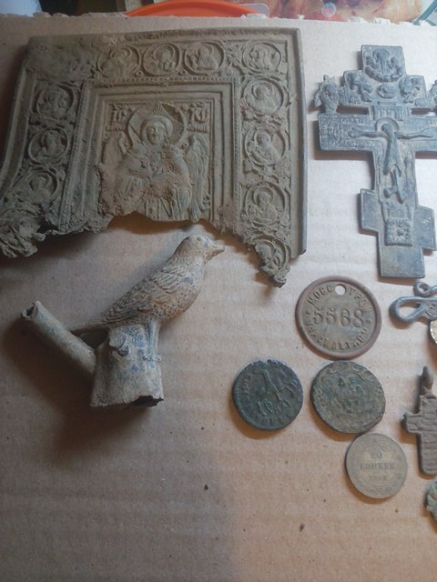 За сегодня, вафельница с текстом рецепта и прибор какой-то столовый серебро 800-ка странный, но приятный.