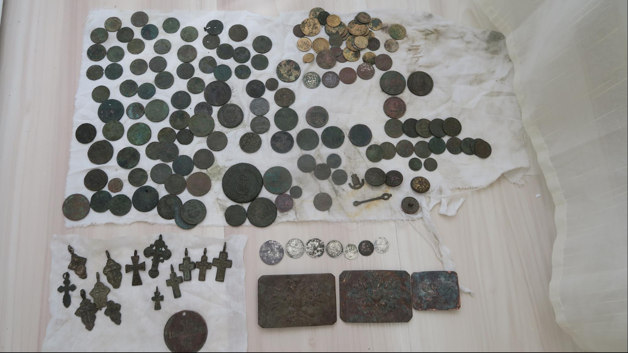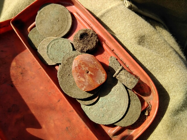 Давненько неотмечался в теме, начал копать фундамент с другом, итог на двоих 32 монеты и два царских билона, так же попался интересный жетон "Женщинам и девицам на украшение", правда без ушка(( прокопали всю переднюю стенку, интересно что будет в центре