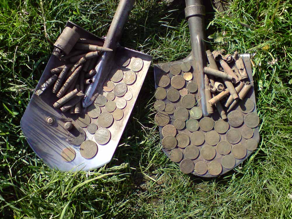 QUOTE(olegpan @ Apr 26 2010, 23:54) Насчет стопки монет надо попробовать на своей моно.....может у меня больше шансов найти клад? Ну что - могу сказать, что моно-катушка с Кондором-3 по кладам работает на отлично. Сегодня поднял не то, чтобы клад, но было около 50 разных медных монет на площади 2х2 метра. Сигналы очень громкие, четкие и однозначные, в одной ямке от лопаты было до десятка монет. После чего сделал много тестов на воздухе - стопка из 7-9 монет стоймя, потом боком, потом чуть россыпью. Потом брал кучки из 20 и даже из 40 монет - благо было на чем тренироваться А вот и фото находок, моя лопата справа. Сообщение отредактировано olegpan: May 18 2010, 23:44 Вложенные эскизы изображений |