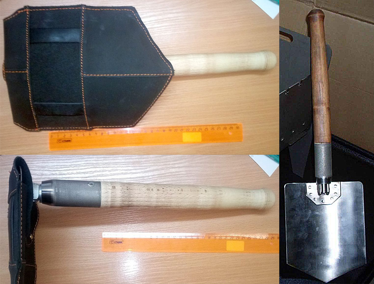 Вчера в соседнем хозмаге увидел такую "Сапёрную лопатку" (как в ценнике указано). Она была с черенком, см 50, но я его пока открутил. Цена-265₽.