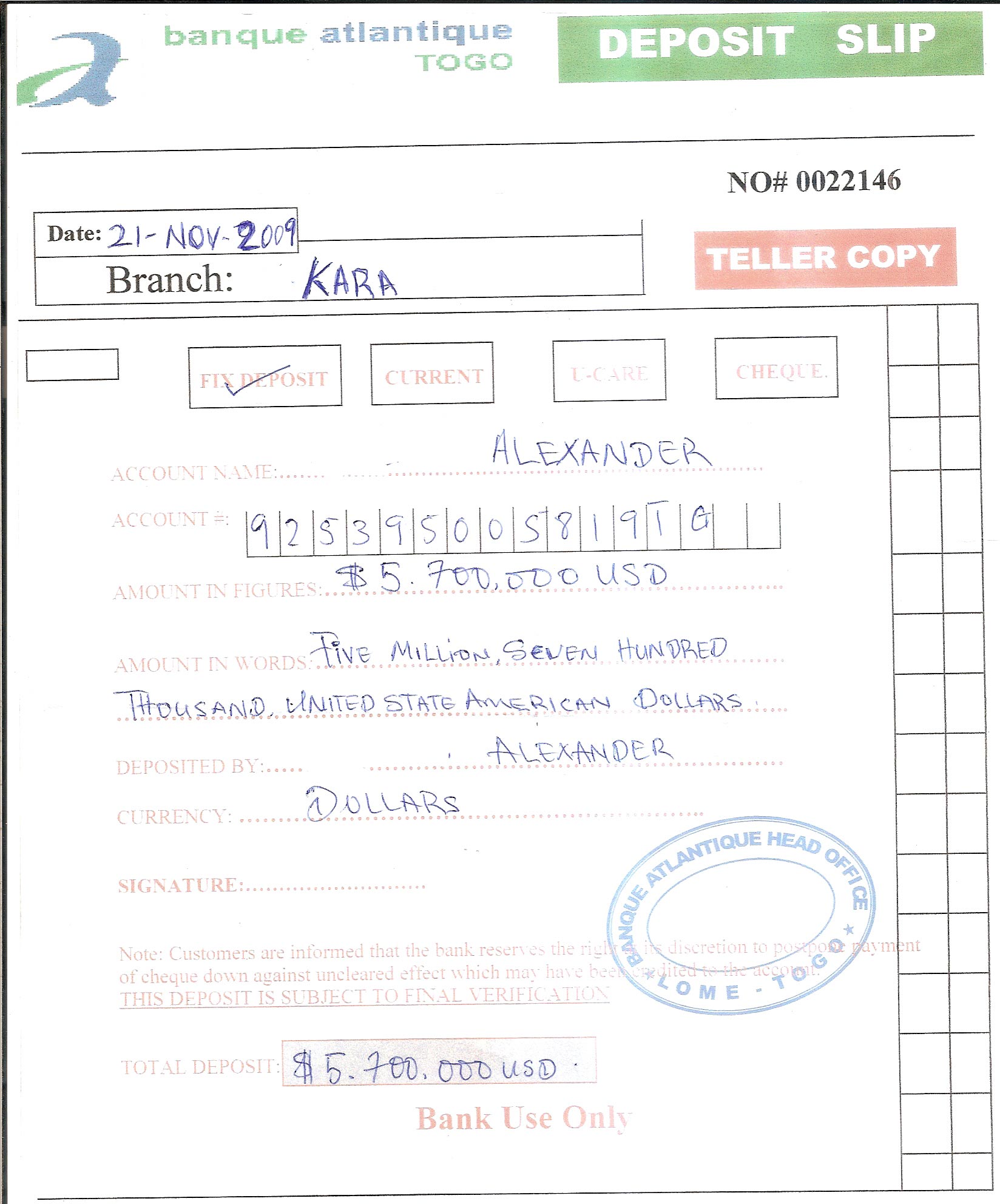 Вот вся документация. Выкладываю в порядке в хронологическом порядке. 1) 1.11.2010. Первое письмо пришло я ноября от владельца ящика barr_muhamadnicolas@yahoo.co.uk. Я пробил этот адрес по Google, поиск не дал результатов. Скорее всего это готовит о том, что ящик зарегистрирован недавно. Вот что было в это письме: My Dearest ..., My name is Muhamad Nicolas Adele, I got your contact in internet networking mail.ru and decided to contact you for benefit transaction.Am FINANCIAL BANK accountant manager in kara branch region. I review over profit sum of $12.Million Dollars deposit consignment in my department and I want to move this fund to your name as the owner beneficiary depositor- because of my position here in FINANCIAL BANK TOGO and this is legal business because the foreign investor owner of this fund died in auto car accident since 2006 and none of his family is here to claim this fund and i don't want our bank head office to know . Kindly confirm back to me if you will work with me to enable me register this money to your name and advice you more about this transaction and next step. Remain to hear from you soon. Mr Muhamad Nicolas Adele Financial Bank Togo. Kara Branch Accountant Manager. Email:muhamadadele@yahoo.com Lome - Togo. В письме велась речь о том, что я финансовый работник банка, у нас есть счет на 12 млн. долларов, владелец которого погиб в аварии в 2006 году, и он хочет перевести на мой счет эти деньги. Очень щедрый дядечка! Спасибо, что выбрал именно меня из 6 млрд. людей на этой планете. Я сказал, что я подтверждаю свое согласие. 2) 3.11.2010 От него пришел ответ, в котором он назвал меня своим другом и спросил в какой стране я проживаю, и сколько мне лет. На все вопросы я отвечал незамедлительно и правдиво. 3) 9.11.2010 Следующие письмо было такое: Dear Alexander ..., Thank you for your response, Sorry for my late reply , am very busy in my office that is why you have not heard any news from me. Regarding your information,Sequel to my previous email i have needs for money now and do not want my deceased clients fund to be confiscated by our bank directors,moreover , the reason why i contacted you for this transaction is because you have the same name with my deceased client and as such you can stand as the next of kin and beneficiary to my deceased client. I know you might not be related or even know (late) Makarov .S. (моя фамилия) but i want you to put a claim on this money as a next of kin to my Late client. Kindly understand that as soon as we clear the funds from the Bank , all the funds will be remmited into your bank account you desire,all the most important thing now is for you to stand as the next of kin to my Late client. And your commission in this transaction will be 30% and 70% will be for me. My good friend please fill out this form attached and sign the agreement and resend back to me so that I will provide you a guarantee for this transaction. I wait for your positive response with the scanned signed agreement attached to this message . Once i get it i will address you on how to secure the Bank Official Claim form and how you will fill it up and send to the bank. All we need from the bank is there approval/acceptance for you as the rightful relative to my deceased client then our bank will issue you authorization and online access to my deceased clients account. You will also have access to check the account online as well as transfer from my deceased client account to your account online,so by that way it will be convenient for us but we must need to conclude the claim processing with the bank to gain the online bank access. In case you might need to speak with me, please feel free to give me a call on my mobile phone +228 0446746. May God bless you and your family. Sincerely, Muhammad Nicolas Adele В этом письме он сказал, что клиент с такой же фамилией как у меня имеет вклад на внушительную сумму, и что он не хочет, чтобы главный менеджер банка конфисковал эти деньги. Он может сделать так, будто я наследник состояния и перегнать на мой счет. При этом 70% достается ему и только 30%. Человек, на которого зарегистрирован вклад, звали Makarov .S. (моя фамилия). Вот странное у человека имя. Вы когда-нить слышали о человеке по имени Путин С. Медведев? Я тоже нет. Но косяки на этом не заканчиваются. В первом письме он писал, что речь идет о 12 миллионах. К этому письму был приоттачен файл Word, типа соглашение между мной и им (я тоже прикладываю его). Вот в это документе речь идет о $ 5,700,000.00 в первом абзаце, а в третьем уже $7,110,000.00. И делить мы с ним будем 50 на 50. Я распечатал, подписал, выслал скан. 4) 16.11.2010 От него пришло письмо в котором он запросил информацию: NAME: ADDRESS: адрес T