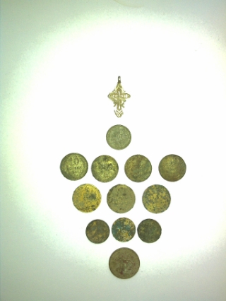 Они били старое поселение уже давно и видимо сняли все жирные «сливки» Но...не тут то было, мы с Сигизмундом мфт маленько прошлись по этим «злачным» местам и вот результат. Жаль что место не мной найдено в первородном состоянии... После меня точно можно сажать картошку, небоясь за заточку лопаты. Дома стояли еще со времен Николая II по ВОВ. Монетки ранних советов из ал.бр. конечно в плохом состояни, билоны получше, никель со щитом более лучше, одна вторая копейки в хорошем сохране, и серебряный крестик . Еще ничего не чистил. Катушка снайперка 6 на 14кГц. И никакого апгрейда! а вот что будет после того как я сделаю апгейд... буду снимать сливки уже Я! Сообщение отредактировано GoTH: Apr 21 2013, 20:46 Вложенные эскизы изображений |