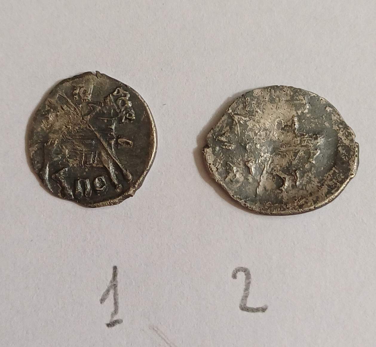 QUOTE(alshi @ May 13 2024, 22:24) Доброго времени суток. Подскажите пожалуйста, можно ли определить по данному обломку что-нибудь? Денга Василия Темного с всадником с копьем и подражанием арабской надписи. № 1975 по ГП-2. |
