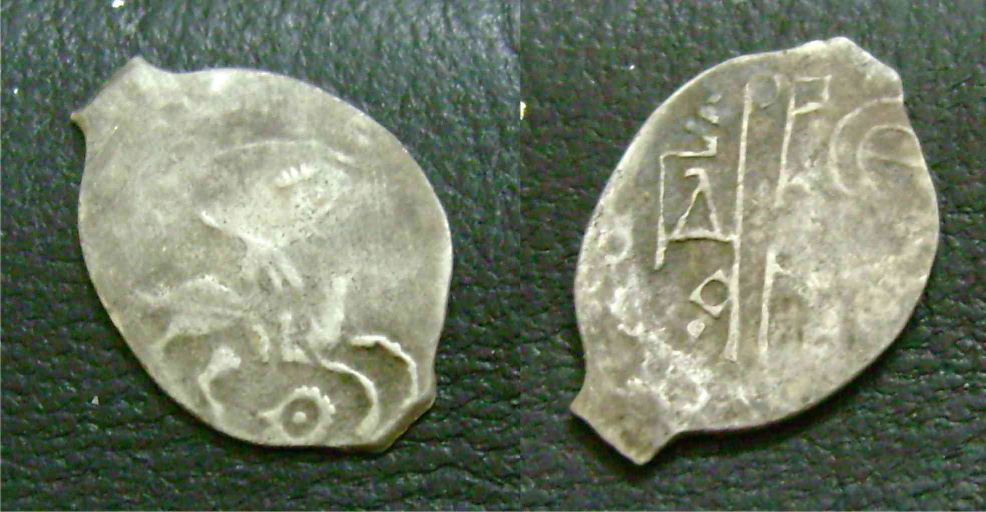 Всем доброго времени суток!Сегодня попробовал определить свою первую чешуйку.Новгородская копейка Федора Ивановича 1597г?Или чтото перепутал?