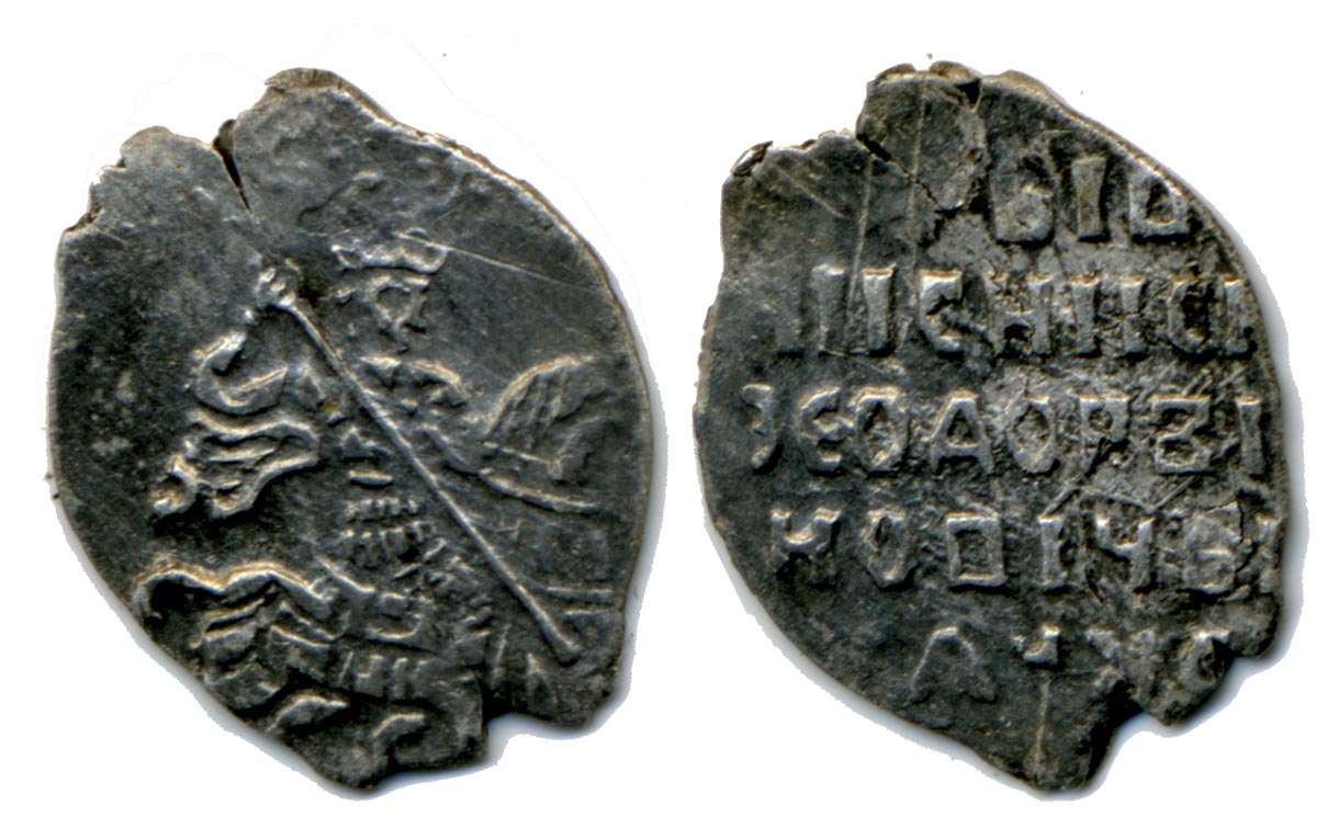 Первая-копейка Иван Васильевич IV,по ГиК №74(2\2) степерь редкости -самая обычная,Псков до 1547 года,легенда читается как:КНЯЗЬ И ВЕЛИКИЙ ГОСУДАРЬ ВСЕЯ РУСИ.