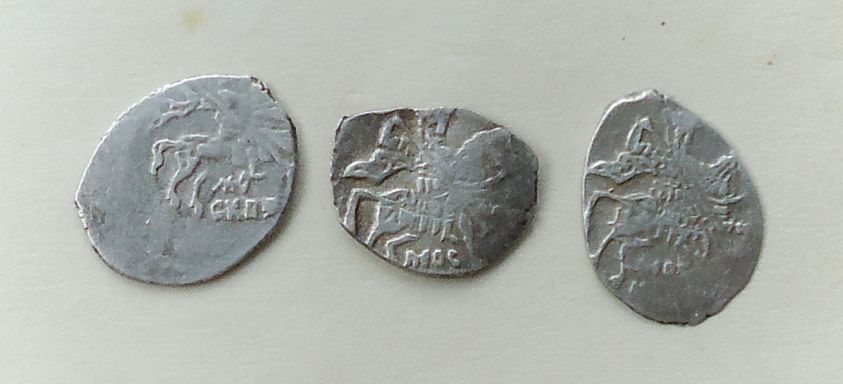 QUOTE(ВаДяН @ Sep 18 2015, 20:57) Спецы, поглядите. Особливо интересны номера 1 и 6. У 6-ой в ногах лошади буква "М" виднеется. Извиняюсь за качество, это со сканера делал. ![]() ![]() 1 Рязань Тёмного, остальное - Грозный. С буквой М простая, лишь немного реже самых частых денег Ивана IV встречается. -------------------- новый каталог по царской чешуе