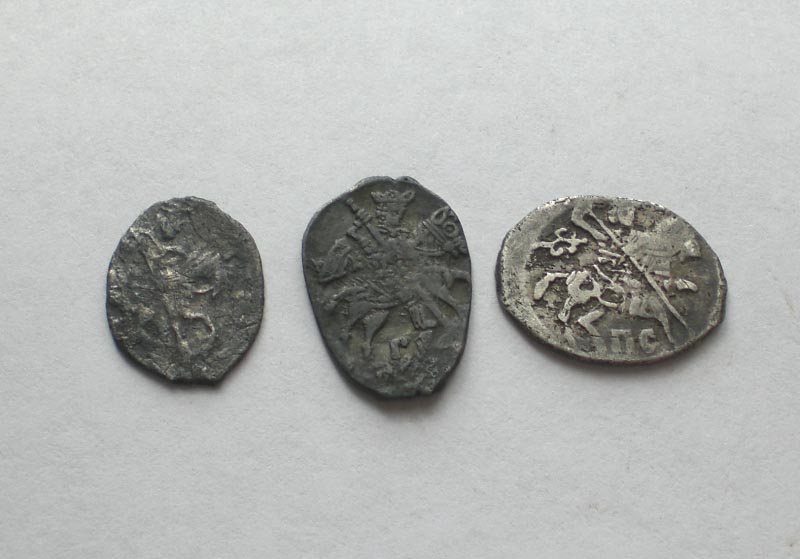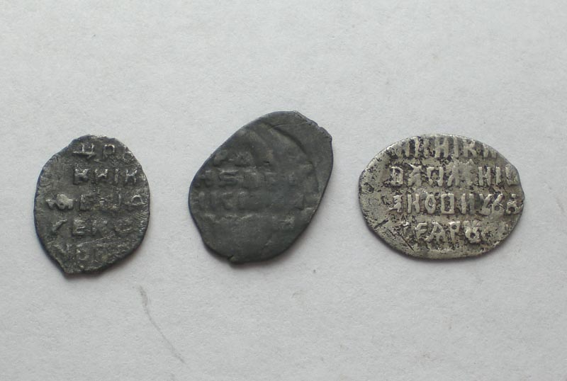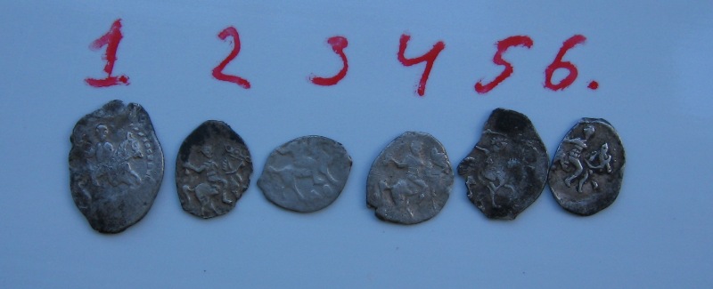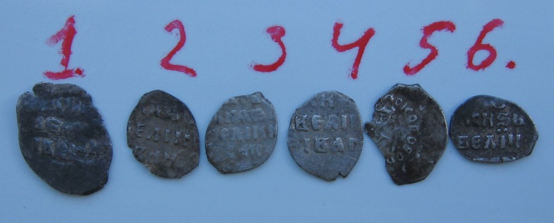 QUOTE(lukash @ Jun 9 2010, 13:48) Вроде определил:Федор Алексеевич, Иван Васильевич (Новгородский ден.двор), Василий Иванович (Псковский ден.двор) Когда говорят - Василий Иванович, все-таки, обычно имеют в виду Василия III. В данном случае это Василий Шуйский. Хотя да, имя-отчество совпадают. Извините за занудство... Федор немного пореже будет - (мне видится КГ 1471 - IX). Иван Васильевич (считается псковским чеканом) - КГ 79 - простой. Шуйский - КГ 265 - простой. Сообщение отредактировано vsemkopets: Jun 9 2010, 13:16 -------------------- "Копайте, копайте, ребята... Авось выкопаете два-три земляных ореха..."